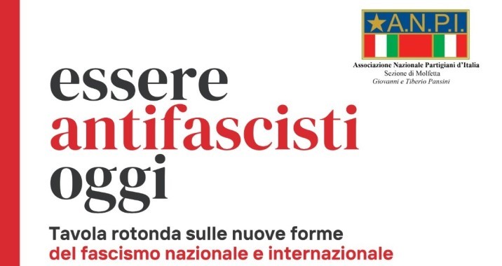 La sezione ANPI di Molfetta ha organizzato l’incontro pubblico dal titolo “Essere antifascisti oggi”, che si svolgerà il 26 marzo 2026, alle ore 18.30, presso la Sala Finocchiaro della Fabbrica di San Domenico.